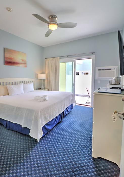 Room 503: Non-Ocean View, King Bed, Partial Ocean View Patio – Click or tap photos for larger views • Return to all rooms diagram